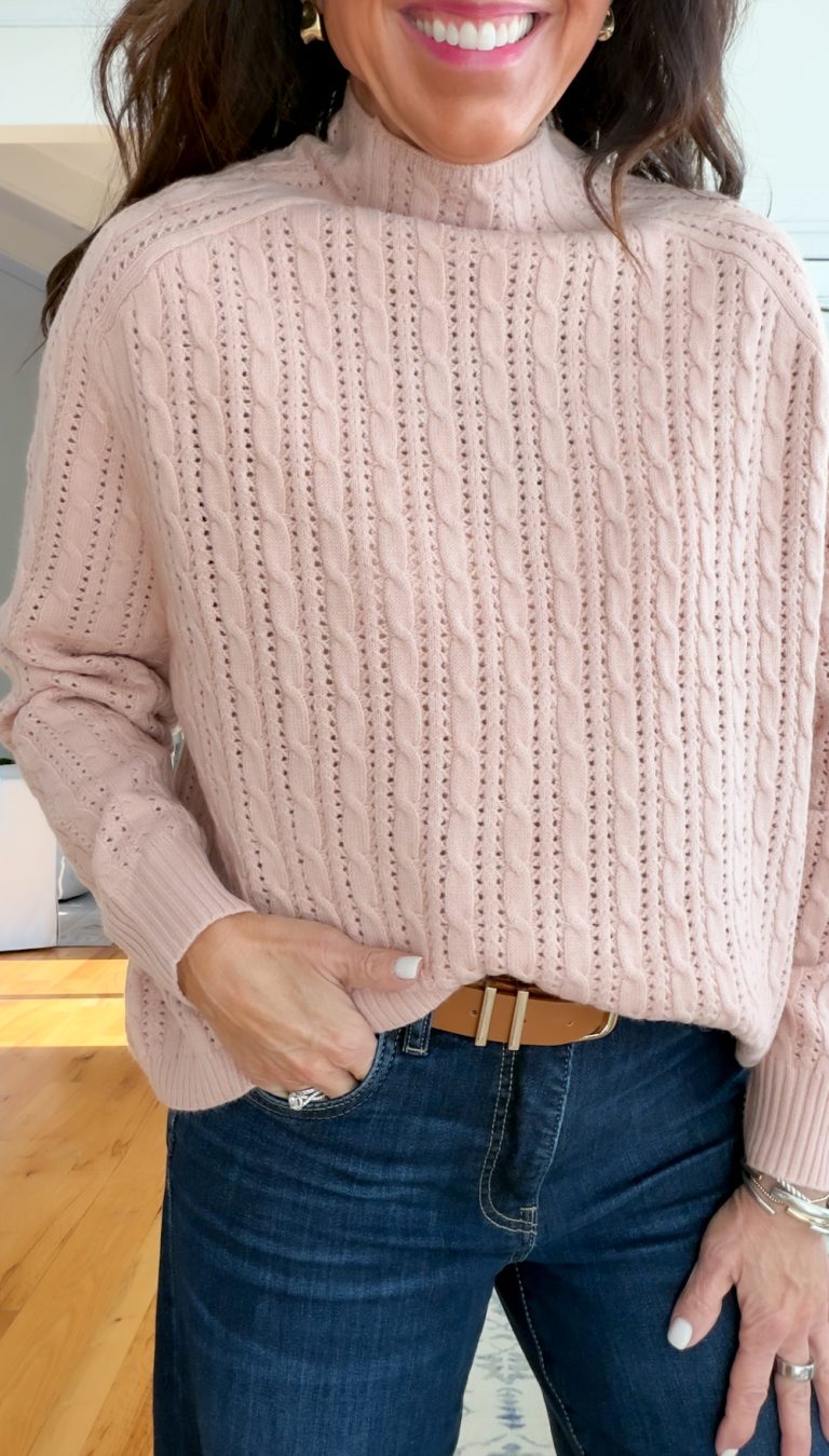 The Walmart Pointelle Mock Neck Sweater is a superb in-between piece. Pointelle knit has the ones tiny openwork main points that make it really feel lighter than a conventional sweater. It’s heat with out being heavy, precisely what you wish to have for transitional taste.