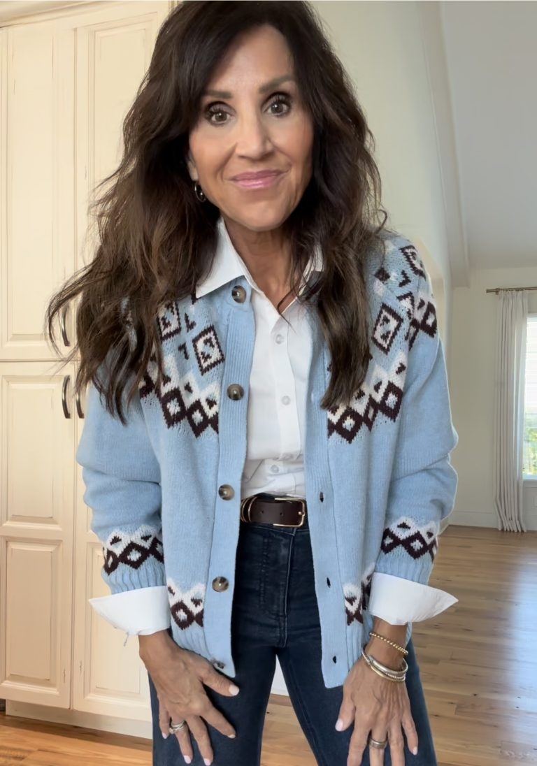 This Truthful Isle Cardigan from Time and Tru used to be an immediate favourite. The gorgeous blue development feels festive with out being excessive, and it’s comfortable sufficient for crisp mornings or cool evenings. I really like that it appears to be like nice with denim or layered over a easy tee for an informal, put-together outfit.