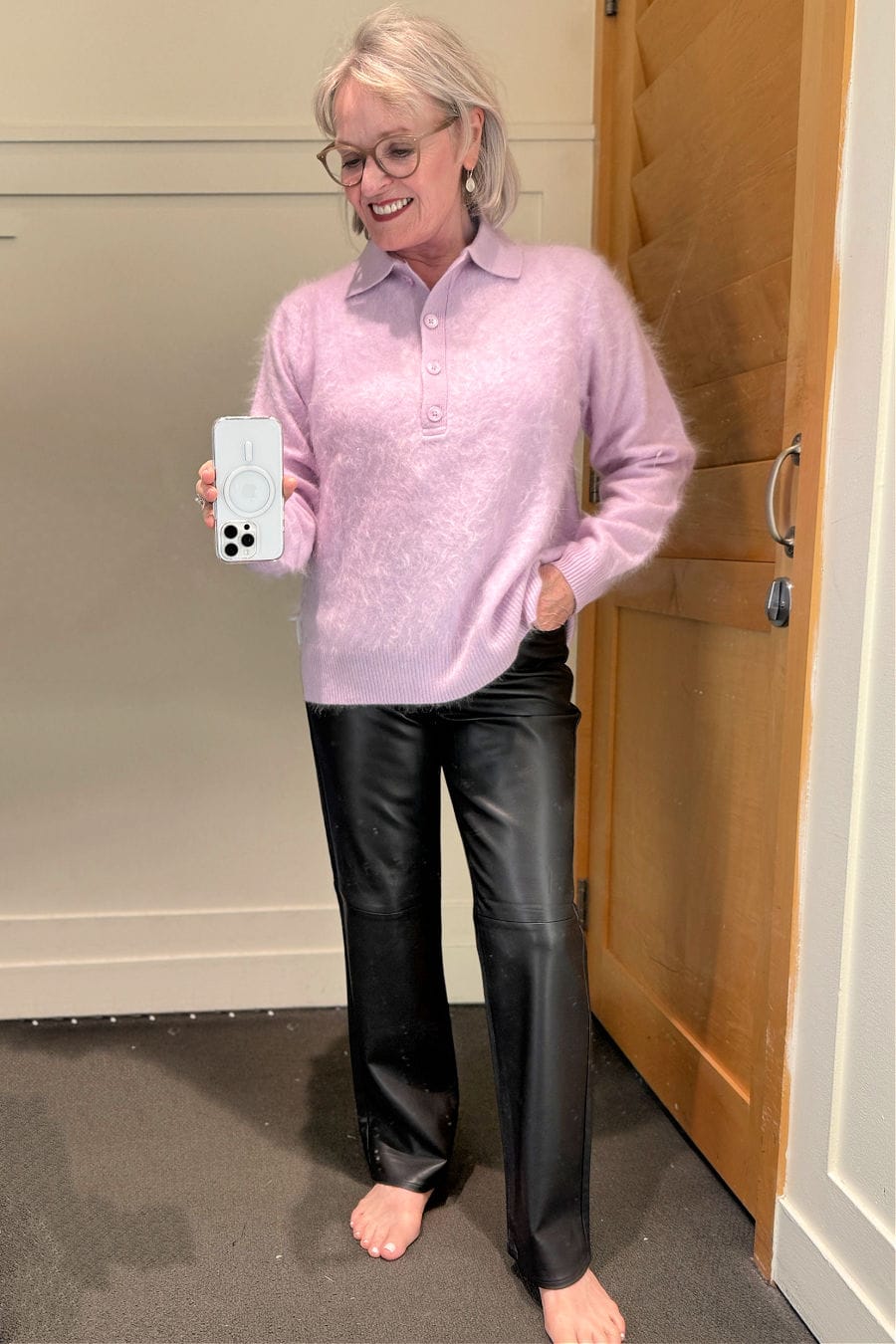 This Brushed Cashmere Rugby Sweater is a kind of items you must really feel to know. The brushing procedure offers it a fuzzy, nearly velvety texture that’s unbelievably comfortable and comfy with out including bulk. I’m dressed in it in lilac, a fab, comfortable color that pairs fantastically with black. This very just about got here house with me. It additionally is available in a stripe.