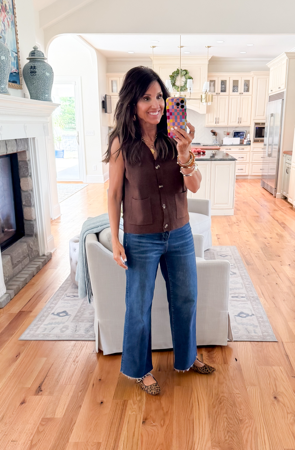 The brown button-front vest is one of these flexible piece for fall. I like dressed in it on my own now, however it is advisable to simply layer a blouse below it, particularly when the elements turns cool. I styled it with dark-wash denims and leopard apartments for an off-the-cuff but put-together outfit.