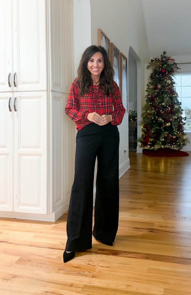 I paired the shirt with the similar wide-leg black pants. This glance works superbly for vacation footage, Christmas brunch, or a circle of relatives accumulating the place you need to appear particular however now not overdone.