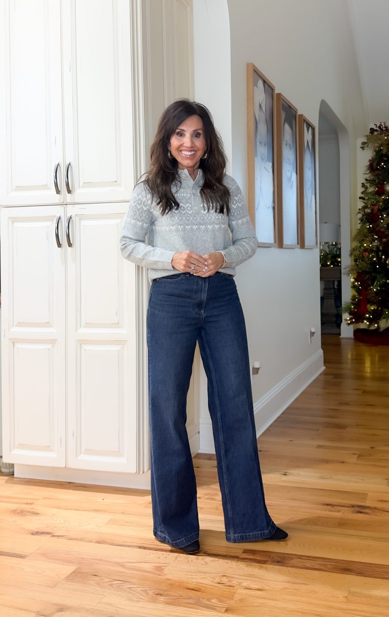 I paired it with the similar wide-leg denims to create a comfortable, informal wintry weather outfit that’s absolute best for cold days. Whether or not you’re sitting by way of the hearth, completing up Christmas buying groceries, or heading out for an off-the-cuff day with circle of relatives, this glance is relaxed and undying.