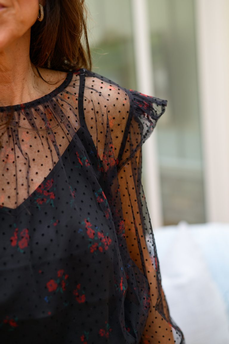 One of the most stars of the outfit is this pretty sheer shirt from LOFT. The black-dotted mesh, paired with subtle floral accents, makes it festive with out being over-the-top. It’s the type of peak that brings simply sufficient drama whilst nonetheless being modest and ladylike.