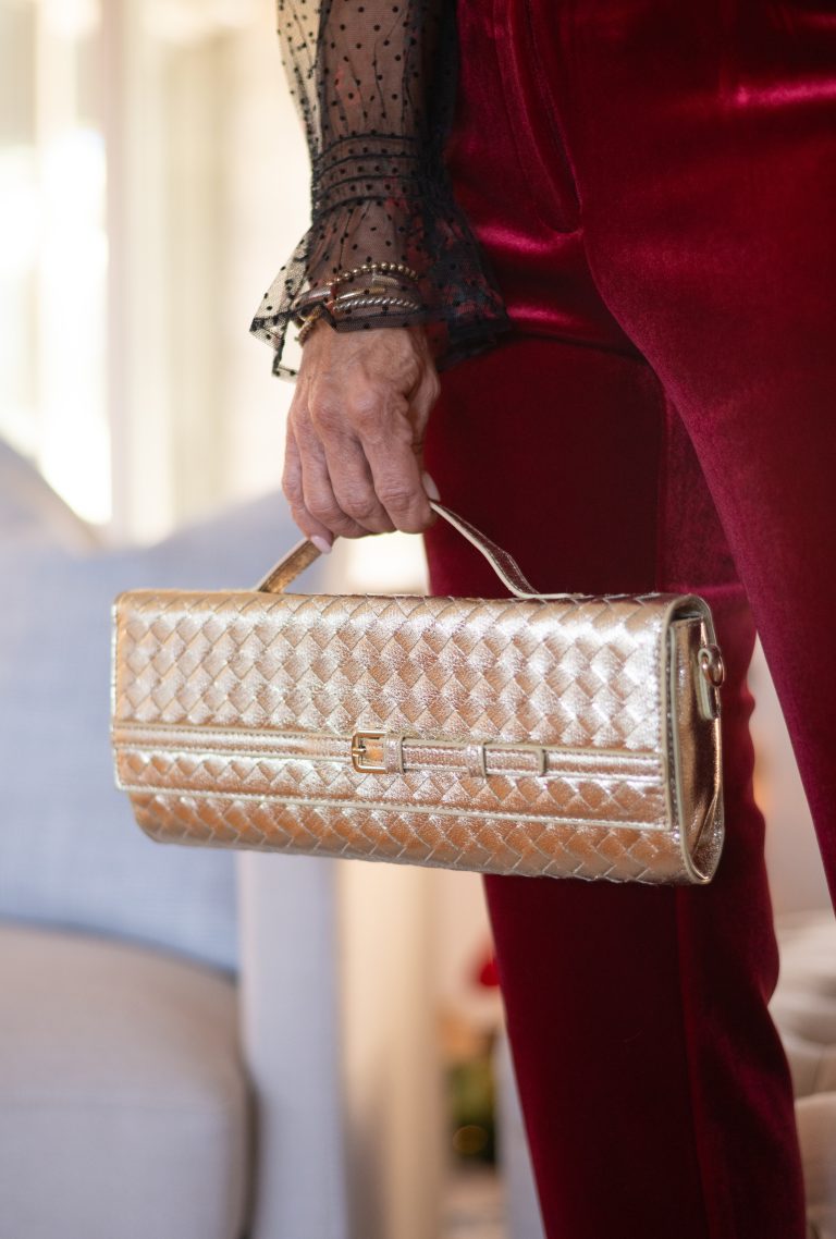 This vacation glance from LOFT moves a gorgeous steadiness between festive and polished. The sheer dotted shirt provides a slightly of magnificence and texture, whilst the wealthy velvet pants herald a vintage seasonal really feel with out being excessive. Paired with black boots and a structured gold seize, the outfit feels subtle and without difficulty party-ready, highest for gatherings the place you need to seem subtle but nonetheless include the heat of the season.